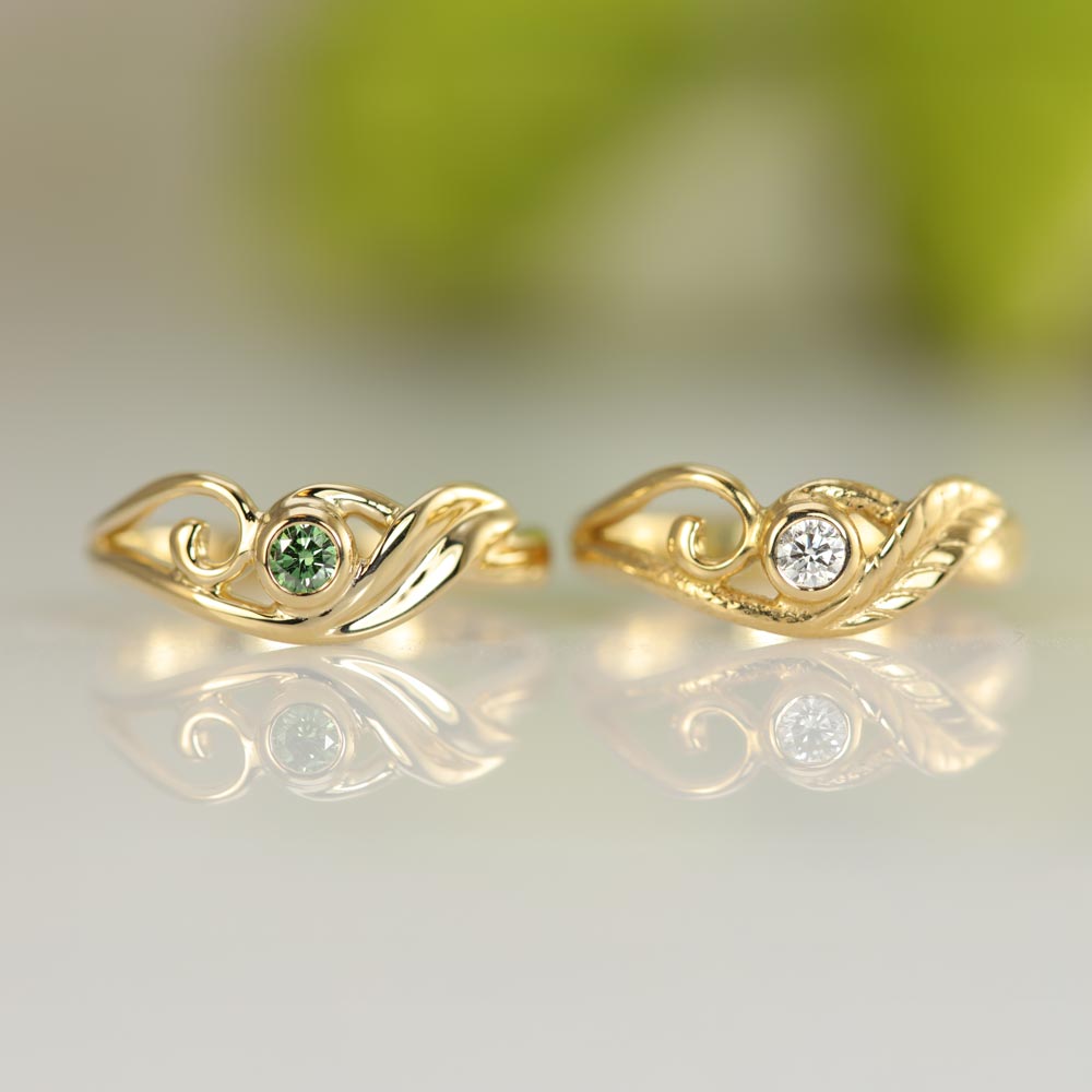 Har man tabt sit hjerte til et menneske, der elsker naturen og dets skjulte væsener, er denne eventyrlige ring perfekt. Bladet og en krøllen skaber en behalig harmoni i ringens udtryk.