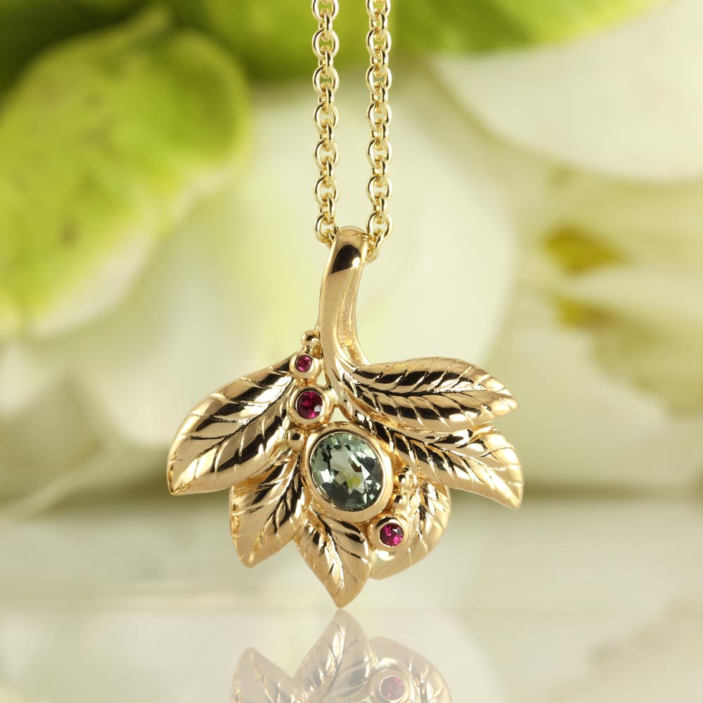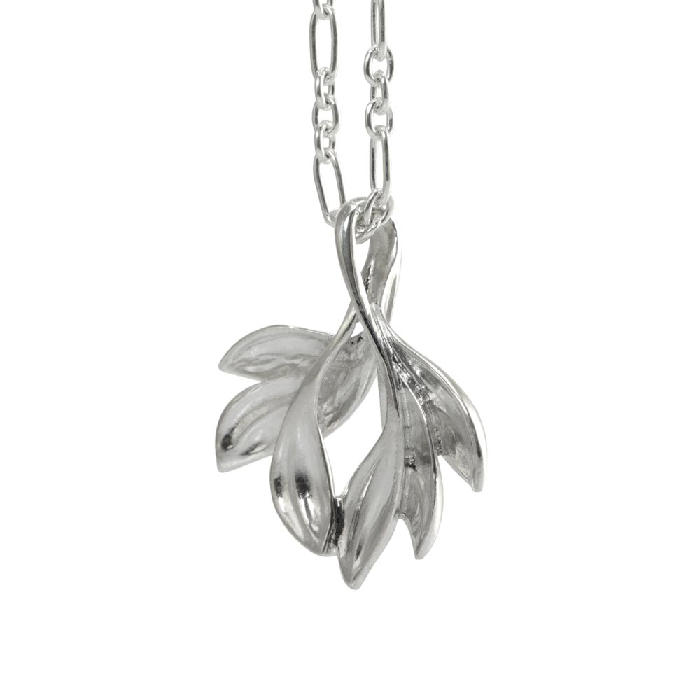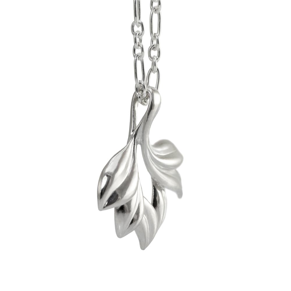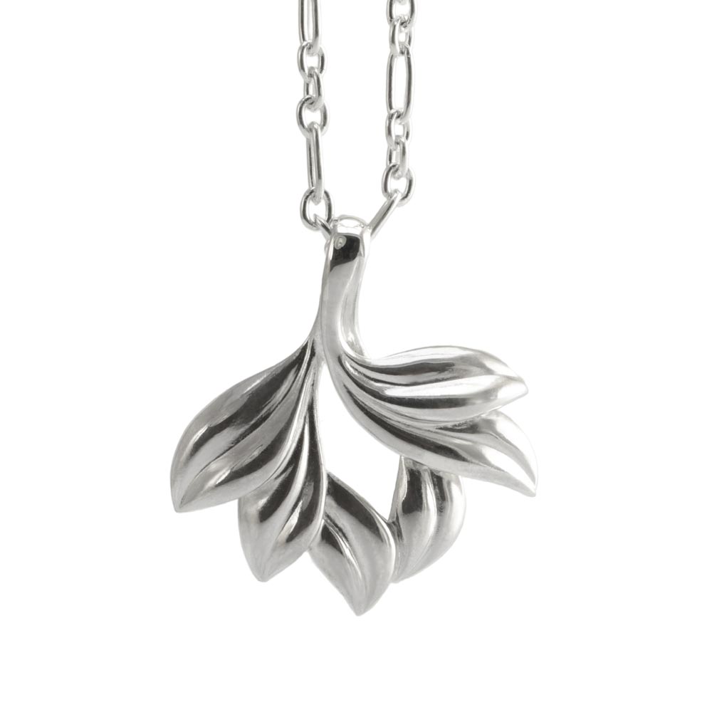6 blade mødes i dette brede vedhæng, som er lige så smukt bagfra som forfra. Smykket inviterer til at blive gjort personligt med for eksempel graverede linjer i bladene og evt. tilføjet detaljer i form af kugler, stene, eller måske en sommerfugl? Se eksempler her. Skriv til os, hvis du ønsker din helt egen version på design@castens.com