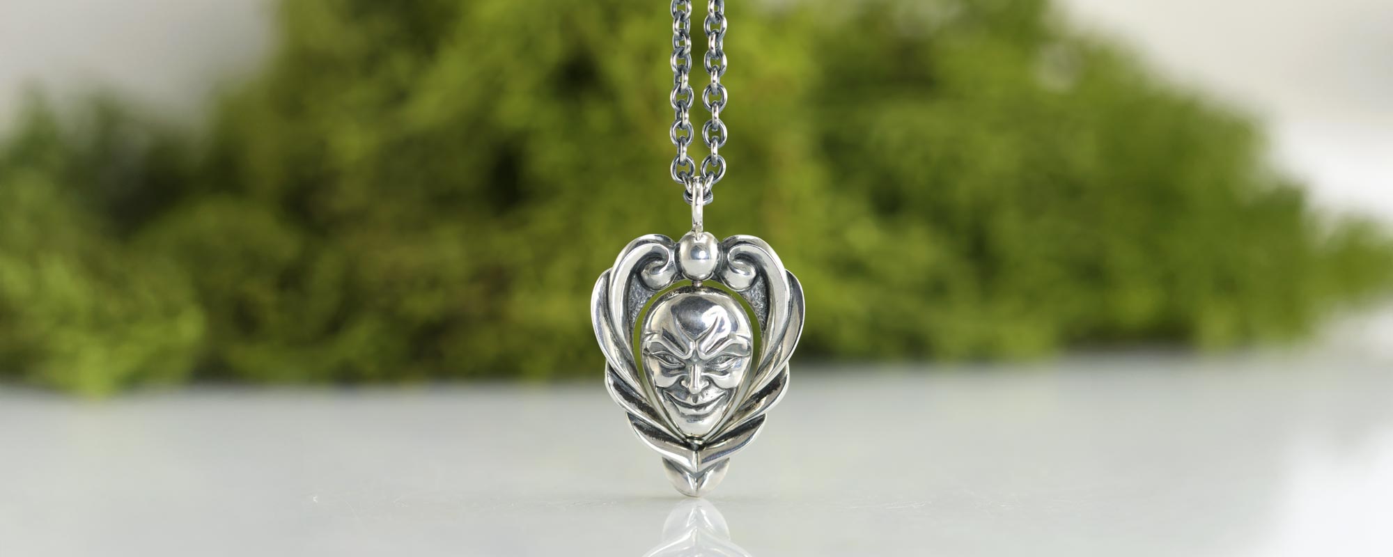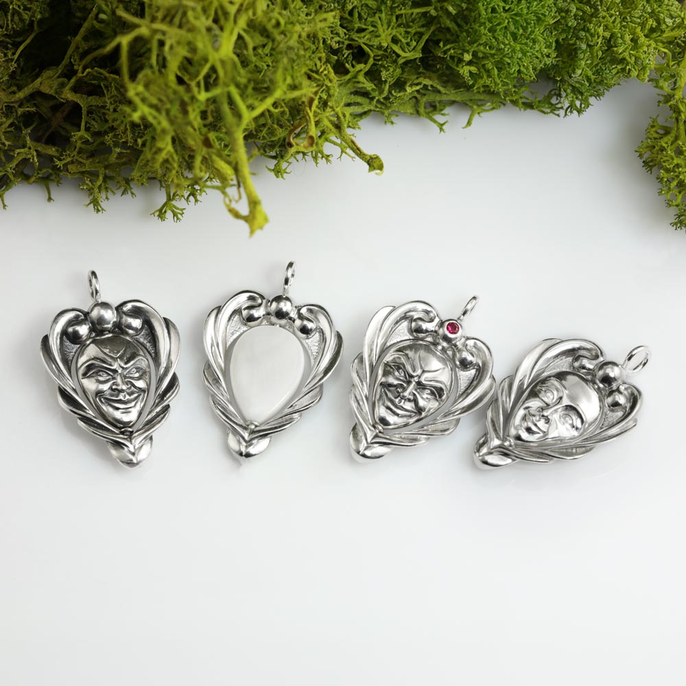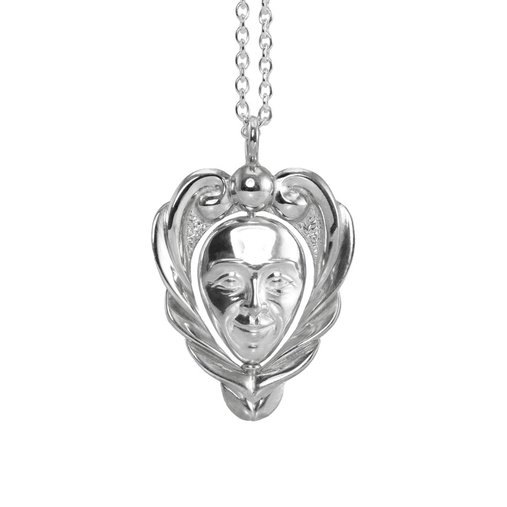 Vedhænget består af en ramme og et ansigt og du kan få skabt en variation, hvis du ønsker det: Med eller uden deloxydering, som fremhæver detaljerne? Måske ansigtet skal være af guld? Måske der skal en sten i kuglen for oven? Måske du slet ikke vil have et ansigt, men blot en smuk dråbe? Der er en del forskellige muligheder. Skriv til os på design@castens.com med dine drømme.